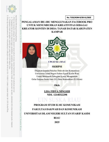 LISA FIDYA NINGSIH, - (2025) PENGALAMAN IBU-IBU MENGGUNAKAN FACEBOOK PRO UNTUK MENUMBUHKAN KREATIVITAS SEBAGAI KREATOR KONTEN DI DESA TANAH DATAR KABUPATEN KAMPAR. Skripsi thesis, UNIVERSITAS ISLAM NEGERI SULTAN SYARIF KASIM RIAU.