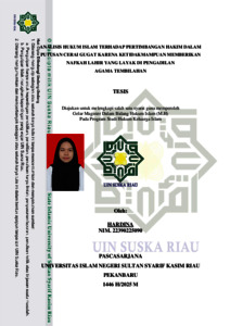 ABSTRAK Hardina (2025): Analisis Hukum Islam Terhadap Pertimbangan Hukum Hakim Dalam Putusan Cerai Gugat Karena Ketidakmampuan Memberikan Nafkah lahir Yang Layak Di Pengadilan Agama Tembilahan Konsep keluarga Islam tidak membedakan hak dan kewajiban antara suami dan istri. Istri mempunyai hak atas suami mereka, seimbang dengan hak yang ada pada suami atas diri mereka. Sehingga jika salah satu pihak merasa haknya tidak terpenuhi maka bisa mengakibatkan perceraian. Penelitian ini merupakan penelitian kepustakaan (library research) dengan menggunakan metode pendekatan normatif. Penelitian ini bertujuan untuk mengetahui pertimbangan hakim pada putusan cerai gugat karena tidak mampu memberi nafkah lahir yang layak, untuk mengetahui hal yang menjadi penyebab cerai gugat karena ketidakmampuan memberikan nafkah lahir yang layak serta untuk menganalisis pertimbangan hakim dalam putusan cerai gugat karena ketidakmampuan memberikan nafkah yang layak. Berdasarkan hasil penelitian, bahwasanya: Pertama, pertimbangan para hakim dalam memutuskan perkara cerai gugat karena ketidakmampuan memberikan nafkah lahir yang layak adalah merujuk pada sebab akibat yang timbul dari alasan tersebut yakni pertengkaran dan perselisihan yang terjadi karena ketidakmampuan memberikan nafkah lahir yang layak, bukan berdasarkan isi pokok gugatan. Kedua, putusan cerai gugat karena ketidakmampuan suami memberikan nafkah lahir yang layak bukan semata-mata hanya karena hal tersebut, melainkan ada beberapa hal lainnya yang menyebabkan istri mengajukan cerai gugat dengan alasan suami tidak mampu memberikan nafkah lahir yang layak dan hal tersebut tentunya berasal dari diri suami, istri ataupun suami istri tersebut. Ketiga, analisis pada pertimbangan hakim dalam memutuskan 7 (tujuh) putusan tersebut bukanlah melihat apa yang tertera dalam gugatan, melainkan sebab-akibat dari alasan ataupun gugatan yang diajukan sebagai alasan cerai gugat. Sebab-akibat yang muncul dari alasan yang diajukan dalam gugatan itu sendiri adalah terjadinya perselisihan dan pertengkaran dalam rumah tangga, sehingga terciptalah hubungan yang tidak harmonis lagi antara suami istri sebab alasan-alasan tersebut, serta tandarisasi ataupun kritetia nafkah yang layak tidak dapat dikatakan sama, karena pada dasarnya nafkah itu adalah apa yang diberikan suami atas usaha dan kemampuannya". Kata Kunci: Nafkah, Layak, Putusan, Cerai Gugat.