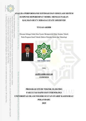 ALPIN ADRIANSYAH, - (2025) ANALISA PERFORMANSI ESTIMASI DAN SIMULASI SISTEM SUSPENSI SEPEREMPAT MOBIL MENGGUNAKAN KALMAN-BUCY SEBAGAI STATE OBSERVER. Skripsi thesis, UNIVERSITAS ISLAM NEGERI SULTAN SYARIF KASIM RIAU.