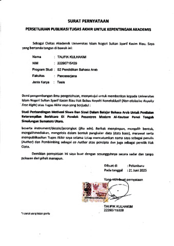 pernyataan upload taufiq - TAUFIK KULHAKIM Pendidikan Bahasa Arab -S2.pdf - Published Version Download (548kB) | Preview |