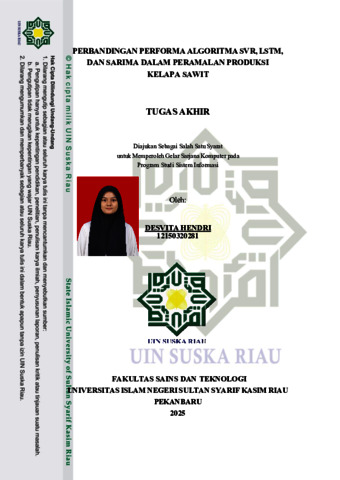 DESVITA HENDRI, - (2025) PERBANDINGAN PERFORMA ALGORITMA SVR, LSTM, DAN SARIMA DALAM PERAMALAN PRODUKSI KELAPA SAWIT. Building of Informatics, Technology and Science (BITS), 7 (1). pp. 54-62. ISSN ISSN 2684-8910 (media cetak) ISSN 2685-3310 (media online)