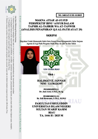 HALIMATUL JANNAH, - (2025) MAKNA ATSAR AS-SUJUD PERSPEKTIF IBNU ‘ASYUR DALAM TAFSIR AL-TAHRIR WA AT-TANWIR (ANALISIS PENAFSIRAN Q.S AL-FATH AYAT 29). Skripsi thesis, UNIVERSITAS ISLAM NEGERI SULTAN SYARIF KASIM RIAU.