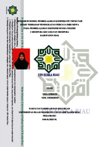ABSTRAK Lisa Afriani, (2023): Pengaruh Model Pembelajaran Kooperatif Think Pair Share Terhadap Peningkatan Percaya Diri Siswa pada Pembelajaran Ekonomi Di Sekolah Menengah Atas Negeri 1 Mempura Penelitian ini bertujuan untuk mengetahui Pengaruh Model Pembelajaran Kooperatif Think Pair Share terhadap Peningkatan Percaya Diri Siswa pada Pembelajaran Ekonomi Di Sekolah Menengah Atas Negeri 1 Mempura. Penelitian ini dilatar belakangi oleh adanya siswa yang tidak mau menjawab ketika ditanyakan. Tidak mampu menjawab soal-soal yang diberikan, tidak sepenuhnya memahami materi yang diajarkan, serta tidak yakin dengan kemampuan yang dimilikinya. Subjek penelitian ini adalah guru dan siswa sedangkan objek penelitian ini adalah model pembelajaran kooperatif Think Pair Share dan Percaya Diri Siswa. Populasi penelitian ini adalah seluruh siswa kelas XI SMA Negeri 1 Mempura. Sampel penelitian ini berjumlah 44 orang yang terbagi ke dalam dua kelas yaitu kelas kontrol berjumlah 22 orang dan kelas eksperimen berjumlah 22 orang. Teknik pengambilan sampel dengan random sampling yaitu sampel yang dipilih secara acak. Teknik pengambilan data dalam penelitian ini adalah tes, obsevasi, dan dokumentasi. Teknik analisis data yang digunakan tes t. Berdasarkan hasil analisis uji t menunjukkan bahwa t hitung > t tabel baik taraf signifikansi 5% (1,682) maupun 1% (2,418) atau 1,682 < 4,674 > 2,418 yang berarti bahwa Ha diterima dan Ho ditolak yang berarti ada perbedaan yang signifikan antara kepercayaan diri siswa yang menggunakan model pembelajaran think pair share dengan kepercayaan diri siswa yang menggunakan model pembelajaran lain pada mata pelajaran ekonomi di Sekolah Menengah Atas Negeri 1 Mempura. Dengan adanya perbedaan tersebut maka dapat dijelaskan bahwa ada pengaruh model pembelajaran think pair share terhadap peningkatan percaya diri siswa pada pembelajaran ekonomi di Sekolah Menengah Atas Negeri 1 Mempura. Kata kunci : Model Pembelajaran Kooperatif, Think Pair Share, Percaya Diri Siswa