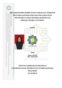 DINDA ARYANI, - (2025) PENGARUH MODEL PEMBELAJARAN TEBAK KATA TERHADAP MINAT BELAJAR SISWA PADA MATA PELAJARAN ILMU PENGETAHUAN SOSIAL DI SEKOLAH MENENGAH PERTAMA NEGERI 1 UJUNGBATU. Skripsi thesis, UNIVERSITAS ISLAM NEGERI SULTAN SYARIF KASIM RIAU.