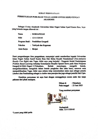 NORHAPIZAH, - (2025) PENGARUH MODEL PEMBELAJARAN PROBLEM BASED LEARNING TERHADAP KEMAMPUAN BERPIKIR SPASIAL SISWA PADA MATA PELAJARAN GEOGRAFI DI SMA NEGERI 15 PEKANBARU. Skripsi thesis, UNIVERSITAS ISLAM NEGERI SULTAN SYARIF KASIM RIAU.