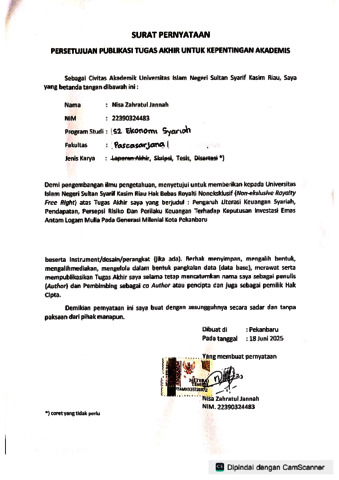 surat pernyataan persetujuan Publikasi - NISA ZAHRATUL JANNAH.pdf - Published Version Download (302kB) | Preview |