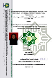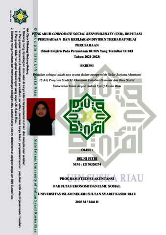 DELNI FITRI, - (2025) PENGARUH CORPORATE SOCIAL RESPONSIBILITY (CSR), REPUTASI PERUSAHAAN DAN KEBIJAKAN DIVIDEN TERHADAP NILAI PERUSAHAAN (Studi Empiris Pada Perusahaan BUMN Yang Terdaftar Di BEI Tahun 2021-2023). Skripsi thesis, UIN SUSKA.