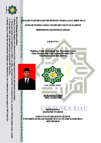 Muhammad Abdi,, - (2025) ANALISIS FAKTOR-FAKTOR PENENTU HARGA JUAL BIBIT IKAN GURAMI DI DESA LIMAU MANIS KECAMATAN KAMPAR PERSPEKTIF EKONOMI SYARIAH. Skripsi thesis, UNIVERSITAS ISLAM NEGERI SULTAN SYARIF KASIM RIAU.