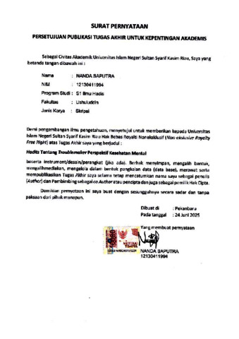 SURAT PERNYTAAN - NANDA SAPUTRA Ilmu Hadis S1.pdf - Published Version