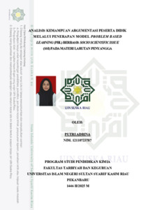 PUTRI ADRINA, - (2025) ANALISIS KEMAMPUAN ARGUMENTASI PESERTA DIDIK MELALUI PENERAPAN MODEL PROBLEM BASED LEARNING (PBL) BERBASIS SOCIO SCIENTIFIC ISSUE (SSI) PADA MATERI LARUTAN PENYANGGA. Skripsi thesis, UNIVERSITAS ISLAM NEGERI SULTAN SYARIF KASIM RIAU.