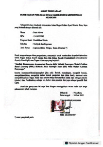 | Divisions: | Fakultas Tarbiyah dan Keguruan > Pendidikan Kimia | ||||||||