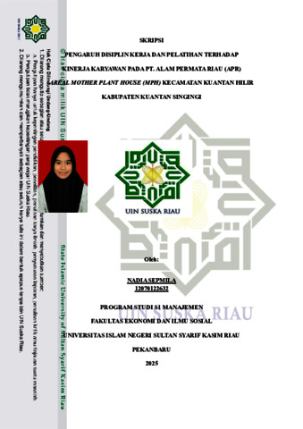NADIA SEPMILA, - (2025) PENGARUH DISIPLIN KERJA DAN PELATIHAN TERHADAP KINERJA KARYAWAN PADA PT.ALAM PERMATA RIAU(APR) AREAL MOTHER PLANT HOUSE(MPH) KECAMATAN KUANTAN HILIR KABUPATEN KUANTAN SINGINGI. Skripsi thesis, UNIVERSITAS ISLAM NEGERI SULTAN SYARIF KASIM RIAU.