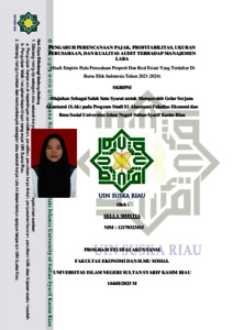 SELLA SHINTIA, - (2025) PENGARUH PERENCANAAN PAJAK, PROFITABILITAS, UKURAN PERUSAHAAN, DAN KUALITAS AUDIT TERHADAP MANAJEMEN LABA (Studi Empiris Pada Perusahaan Properti Dan Real Estate Yang Terdaftar Di Bursa Efek Indonesia Tahun 2021-2024). Skripsi thesis, UNIVERSITAS ISLAM NEGERI SULTAN SYARIF KASIM RIAU.