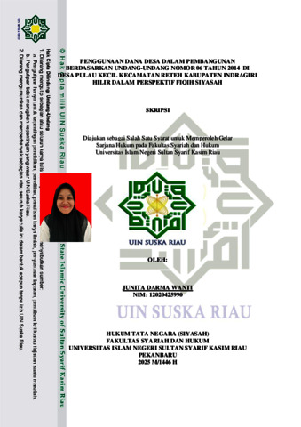 JUNITA DARMA WANTI, - (2025) PENGGUNAAN DANA DESA DALAM PEMBANGUNAN BERDASARKAN UNDANG-UNDANG NOMOR 06 TAHUN 2014 DI DESA PULAU KECIL KECAMATAN RETEH KABUPATEN INDRAGIRI HILIR DALAM PERSPEKTIF FIQIH SIYASAH. Skripsi thesis, UNIVERSITAS ISLAM NEGERI SULTAN SYARIF KASIM RIAU.