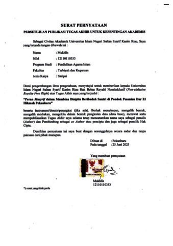 SURAT PERNYATAAN - MUKHLIS PENDIDIKAN AGAMA ISLAM.pdf - Published Version Download (321kB) | Preview |