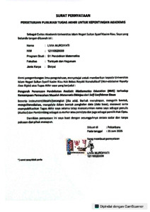 Surat Pernyataan Persetujuan Publikasi - LIVIA MURDIYATI PENDIDIKAN MATEMATIKA.pdf - Published Version Download (328kB) | Preview |