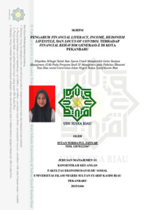 ABSTRAK PENGARUH FINANCIAL LITERACY, INCOME, HEDONISM LIFESTYLE, DAN LOCUS OF CONTROL TERHADAP FINANCIAL BEHAVIOR GENERASI-Z DI KOTA PEKANBARU Oleh: INTAN WIRDATUL JANNAH NIM: 12070123547 Penelitian ini bertujuan untuk menganalisis faktor-faktor yang mempengaruhi perilaku keuangan generasi Z di Kota Pekanbaru. Variabel yang diteliti dalam penelitian ini adalah financial literacy, income, hedonism lifestyle, dan locus of control. Data penelitian ini dikumpulkan menggunakan kuesioner dari Gen Z yang tinggal di Kota Pekanbaru. Dengan menggunakan teknik nonprobability sampling, peneliti berhasil memperoleh 259 sampel. Analisis regresi linier berganda digunakan dengan menggunakan IBM SPSS 25. Hasil penelitian menunjukkan bahwa financial literacy dan hedonism lifestyle berpengaruh negatif dan signifikan terhadap financial behavior, sedangkan income dan locus of control berpengaruh positif dan signifikan terhadap financial behavior. Temuan ini menyoroti pentingnya memiliki financial literacy, income, hedonism lifestyle, dan locus of control yang baik dalam meningkatkan financial behavior yang baik. Penelitian ini memberikan wawasan berharga bagi para pembuat kebijakan dan lembaga pendidikan keuangan. Kata Kunci: Financial behavior; financial literacy, hedonism lifestyle, income, locus of control