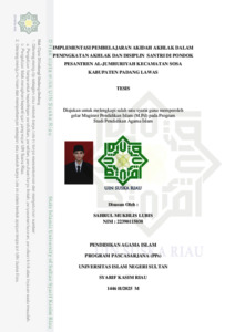 SAHRUL MUKHLIS LUBIS, - (2025) IMPLEMENTASI PEMBELAJARAN AKIDAH AKHLAK DALAM PENINGKATAN AKHLAK DAN DISIPLIN SANTRI DI PONDOK PESANTREN AL-JUMHURIYAH KECAMATAN SOSA KABUPATEN PADANG LAWAS. Thesis thesis, UNIVERSITAS ISLAM NEGERI SULTAN SYARIF KASIM RIAU.