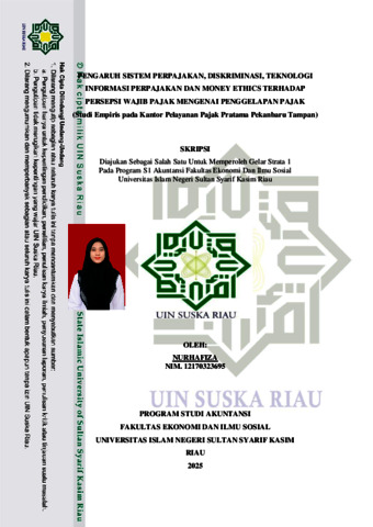 NURHAFIZA, - (2025) PENGARUH SISTEM PERPAJAKAN, DISKRIMINASI, TEKNOLOGI INFORMASI PERPAJAKAN DAN MONEY ETHICS TERHADAP PERSEPSI WAJIB PAJAK MENGENAI PENGGELAPAN PAJAK (Studi Empiris pada Kantor Pelayanan Pajak Pratama Pekanbaru Tampan). Skripsi thesis, UNIVERSITAS ISLAM NEGERI SULTAN SYARIF KASIM RIAU.