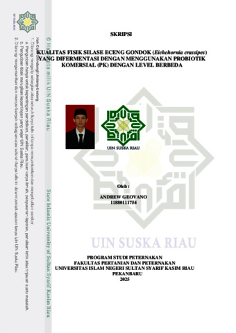 ANDREW GEOVANO, - (2025) KUALITAS FISIK SILASE ECENG GONDOK (Eichchornia crassipes) YANG DIFERMENTASI DENGAN MENGGUNAKAN PROBIOTIK KOMERSIAL (PK) DENGAN LEVEL BERBEDA. Skripsi thesis, UIN SUSKA.