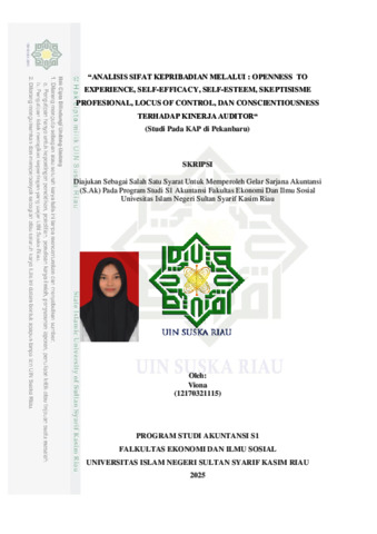 VIONA, - (2025) ANALISIS SIFAT KEPRIBADIAN MELALUI : OPENNESS TO EXPERIENCE, SELF-EFFICACY, SELF-ESTEEM, SKEPTISISME PROFESIONAL, LOCUS OF CONTROL, DAN CONSCIENTIOUSNESS TERHADAP KINERJA AUDITOR“ (STUDI PADA KAP DI PEKANBARU). Skripsi thesis, UNIVERSITAS ISLAM NEGERI SULTAN SYARIF KASIM RIAU.