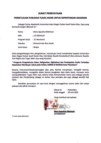 SURAT PERNYATAAN - MERY AGUSTINA MAHMUD AKUNTANSI.pdf - Published Version