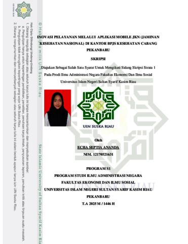 ECHA SEPTIA ANANDA, - (2025) INOVASI PELAYANAN MELALUI APLIKASI MOBILE JKN (JAMINAN KESEHATAN NASIONAL) DI KANTOR BPJS KESEHATAN CABANG PEKANBARU. Skripsi thesis, UNIVERSITAS ISLAM NEGERI SULTAN SYARIF KASIM RIAU.