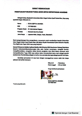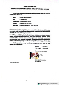 surat pernyataan tugas akhir - ECHA SEPTIA ANANDA ADMINISTRASI NEGARA.pdf - Published Version Download (361kB) | Preview |