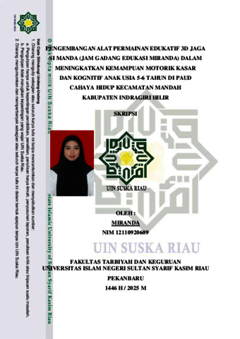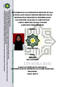 MIRANDA, - (2025) PENGEMBANGAN ALAT PERMAINAN EDUKATIF 3D JAGA SI MANDA (JAM GADANG EDUKASI MIRANDA) DALAM MENINGKATKAN KEMAMPUAN MOTORIK KASAR DAN KOGNITIF ANAK USIA 5-6 TAHUN DI PAUD CAHAYA HIDUP KECAMATAN MANDAH KABUPATEN INDRAGIRI HILIR. Skripsi thesis, UNIVERSITAS ISLAM NEGERI SULTAN SYARIF KASIM RIAU.