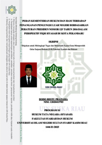 DODO RESTU PRATAMA, - (2025) PERAN KEMENTERIAN HUKUM DAN HAM TERHADAP PENANGANAN PENGUNGSI LUAR NEGERI BERDASARKAN PERATURAN PRESIDEN NOMOR 125 TAHUN 2016 DALAM PERSPEKTIF FIQH SIYASAH DI KOTA PEKANBARU. Skripsi thesis, UNIVERSITAS ISLAM NEGERI SULTAN SYARIF KASIM RIAU.