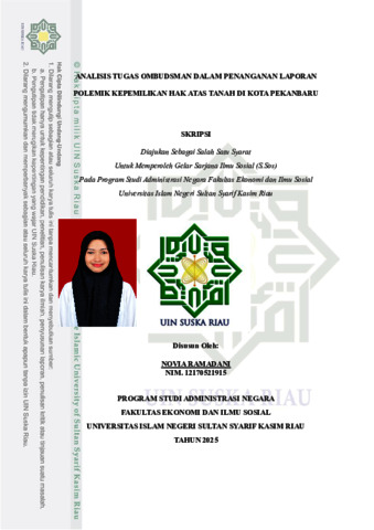NOVIA RAMADANI, - (2025) ANALISIS TUGAS OMBUDSMAN DALAM PENANGANAN LAPORAN POLEMIK KEPEMILIKAN HAK ATAS TANAH DI KOTA PEKANBARU. Skripsi thesis, UNIVERSITAS ISLAM NEGERI SULTAN SYARIF KASIM RIAU.