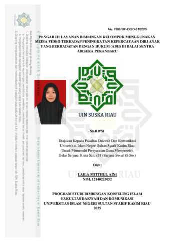 LAILA MITTHUL AINI, - (2025) PENGARUH LAYANAN BIMBINGAN KELOMPOK MENGGUNAKAN MEDIA VIDEO TERHADAP PENINGKATAN KEPERCAYAAN DIRI ANAK YANG BERHADAPAN DENGAN HUKUM (ABH) DI BALAI SENTRA ABISEKA PEKANBARU. Skripsi thesis, UNIVERSITAS ISLAM NEGERI SULTAN SYARIF KASIM RIAU.
