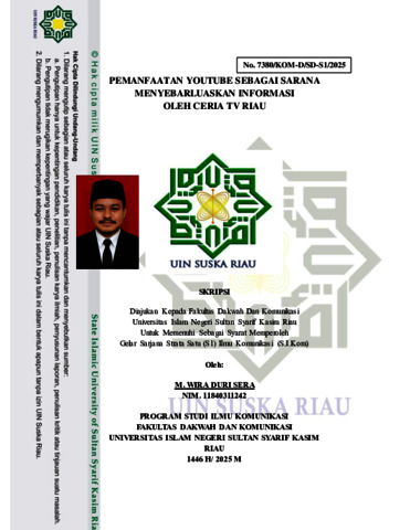 M. WIRA DURI SERA, - (2025) PEMANFAATAN YOUTUBE SEBAGAI SARANA MENYEBARLUASKAN INFORMASI OLEH CERIA TV RIAU. Skripsi thesis, UNIVERSITAS ISLAM NEGERI SULTAN SYARIF KASIM RIAU.