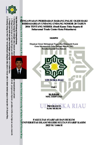 M. ILHAM, - (2025) PENGAWASAN PEREDARAN BARANG PALSU OLEH HAKI BERDASARKAN UNDANG-UNDANG NOMOR 20 TAHUN 2016 TENTANG MEREK (Studi Kasus Toko Sepatu di Sukaramai Trade Center Kota Pekanbaru). Skripsi thesis, UNIVERSITAS ISLAM NEGERI SULTAN SYARIF KASIM RIAU.