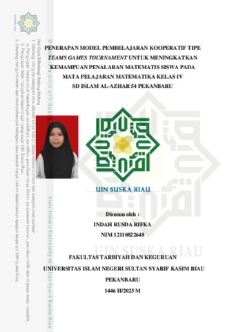 ABSTRAK Indah Rusda Rifka, (2025) : Penerapan Model Pembelajaran Kooperatif Tipe Teams Games Tournament Untuk Meningkatkan Kemampuan Penalaran Matematis Siswa pada Mata Pelajaran Matematika Siswa Kelas IV SD Islam Al-Azhar 54 Pekanbaru. Penelitian ini bertujuan untuk mendeskripsikan penerapan model pembelajaran tipe teams games tournament dapat meningkatkan kemampuan penalaran matematis siswa pada mata pelajaran matematika di kelas IV SD Islam Al-Azhar 54 Pekanbaru. Penelitian ini dilatarbelakangi oleh kurangnya kemampuan penalaran matematis siswa dalam evaluasi pelajaran matematika. Penelitian ini merupakan penelitian tindakan kelas, subjek penelitian ini adalah 20 orang siswa kelas IV SD Islam Al-Azhar 54 Pekanbaru tahun ajaran 2024/2025. Penelitian ini dilakukan dalam dua siklus dan setiap siklus terdiri dari dua kali pertemuan. Teknik pengumpulan data dengan menggunakan teknik observasi, tes dan dokumentasi. Sedangkan Teknik analisis data yang digunakan yaitu dengan analilis deskriptif dan persentase. Berdasarkan hasil penelitian dan analisis data menunjukkan bahwa model teams games tournament dapat meningkatkan kemampuan penalaran matematis siswa. Hal ini dapat diketahui sebelum tindakan kemampuan penalaran matematis siswa hanya mencapai rata-rata 53,38% yang berada pada rentang 40-59% dengan kategori kurang baik. Setelah dilakukan tindakan kelas pada siklus I kemampuan penalaran matematis siswa meningkat berada pada rentang 69,69% dengan kategori cukup baik. Sedangkan pada siklus II terjadi peningkatan menjadi 84% dengan kategori Sangat baik. Dengan demikian dapat diambil kesimpulan bahwa kemampuan penalaran matematis siswa pada mata pelajaran Matematika di kelas IV SD Islam Al-Azhar 54 Pekanbaru dapat ditingkatkan melalui penerapan model pembelajaran teams games tournament. Kata Kunci : Model Pembelajaran Teams Games Tournament, Kemampuan Penalaran Siswa.