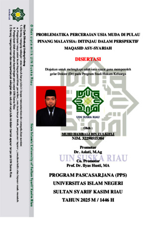 MUHD HAMBALI BIN ZULKIFLI, - (2025) PROBLEMATIKA PERCERAIAN USIA MUDA DI PULAU PINANG MALAYSIA: DITINJAU DALAM PERSPEKTIF MAQASID ASY-SYARIAH. Disertasi thesis, UNIVERSITAS ISLAM NEGERI SULTAN SYARIF KASIM RIAU.