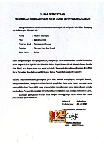 Surat Pernyataan Publikasi Kfvh - KHOFIVA MARDIANI ADMINISTRASI NEGARA.pdf - Published Version Download (991kB) | Preview |