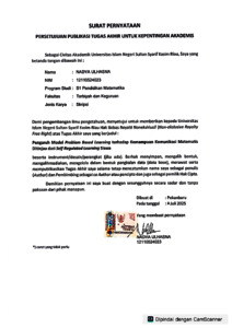 NADYA ULHASNA, - (2025) PENGARUH MODEL PROBLEM BASED LEARNING TERHADAP KEMAMPUAN KOMUNIKASI MATEMATIS DITINJAU DARI SELF REGULATED LEARNING SISWA. Skripsi thesis, UIN SUSKA.