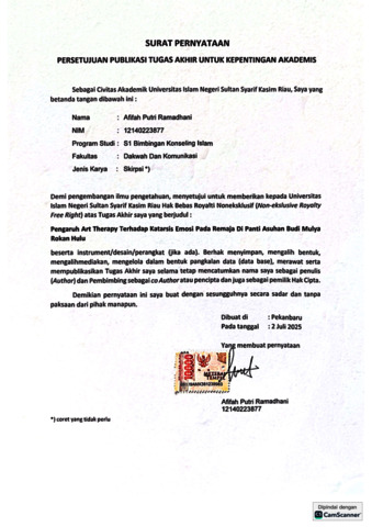 Surat pernyataan Publikasi tugas - AFIFAH PUTRI RAMADHANI BIMBINGAN KONSELING ISLAM.pdf - Published Version Download (536kB) | Preview |