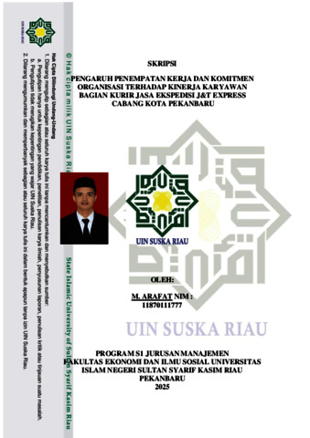 M. ARAFAT, - (2025) PENGARUH PENEMPATAN KERJA DAN KOMITMEN ORGANISASI TERHADAP KINERJA KARYAWAN BAGIAN KURIR JASA EKSPEDISI J&T EXPRESS CABANG KOTA PEKANBARU. Skripsi thesis, UNIVERSITAS ISLAM SULTAN SYARIF KASIM RIAU.