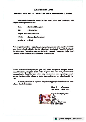 SURAT PERNYATAAN PUBLIKASI HASIL TUGAS AKHIR - Nurakmal Oktaviyanda Ilmu Komunikasi.pdf Download (318kB) | Preview |