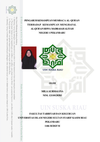 MILA AURMALINA, - (2025) PENGARUHKEMAMPUANMEMBACA AL- QUR’AN TERHADAP KEMAMPUAN MENGHAFAL AL-QUR’AN SISWAMADRASAH ALIYAH NEGERI 1 PEKANBARU. Skripsi thesis, UNIVERSITAS ISLAM SULTAN SYARIF KASIM RIAU.