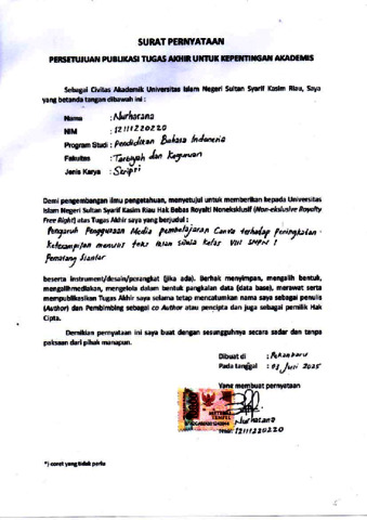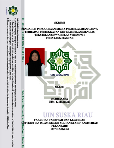 NURHASANA, - (2025) PENGARUH PENGGUNAAN MEDIA PEMBELAJARAN CANVA TERHADAP PENINGKATAN KETERAMPILAN MENULIS TEKS IKLAN SISWA KELAS VIII SMPN 1 PEMATANG SIANTAR. Skripsi thesis, UIN SUSKA.