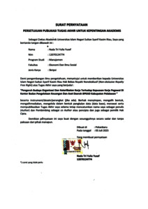 NADA TRI YULIA YUSEF, - (2025) PENGARUH BUDAYA ORGANISASI DAN KETERLIBATAN KERJA TERHADAP KEPUASAN KERJA PEGAWAI DI KANTOR BADAN PENGELOLAAN KEUANGAN DAN ASET DAERAH (BPKAD) KABUPATEN PELALAWAN. Skripsi thesis, UNIVERSITAS ISLAM NEGERI SULTAN SYARIF KASIM RIAU.