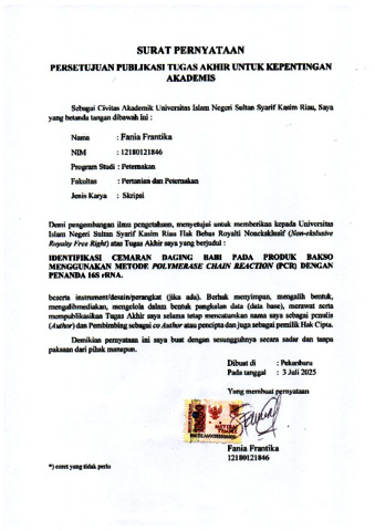 SURAT PERNYATAAN - FANIA FRANTIKA PETERNAKAN.pdf