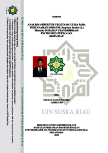 FAUZAN SASNA JUNAIDI(2025) : ANALISIS STRUKTUR VEGETASI GULMA PADA PERTANAMAN SORGUM (Sorghum bicolor (L.) Moench) DI BADAN STANDARDISASI INSTRUMEN PERTANIAN (BSIP) RIAU,,,,Keanekaragaman vegetasi gulma memiliki kemampuan tinggi dalam menguasai sarana tumbuh dan ruang hidup, sehingga menjadi prioritas dalam pengendalian gulma pada pertanaman sorgum. Penelitian ini bertujuan untuk menganalisis struktur vegetasi gulma pada pertanaman sorgum di Badan Standardisasi Instrumen Pertanian (BSIP) Riau. Penelitian ini telah dilaksanakan pada bulan Februari-April 2025 di kebun Badan Standardidasi Instrumen Pertanian (BSIP) Riau di Kubang Jaya, Jl. Raya Kubang, Kecamatan Siak Hulu, Kabupaten Kampar, Provinsi Riau. Penelitian ini menggunakan metode survei serta dilakukan secara acak (random sampling) yang dipilih menjadi tempat penelitian. Pengambilan sampel gulma dilakukan dengan metode kuadran menggunakan plot ukuran 1 x 1 m². Pemilihan plot dilakukan secara acak ke lahan pertanaman sorgum sebanyak 10 plot. Gulma diamati sebanyak 3 kali pada umur 20 HST, 40 HST, dan 60 HST. Parameter yang diamati yaitu kerapatan mutlak, kerapatan nisbi, frekuensi mutlak, frekuensi nisbi, indeks nilai penting, indeks keanekaragaman, dan indeks dominasi. Hasil penelitian didapatkan 8 spesies gulma yaitu, teki ladang, bandotan, rumput belulang, rumput mutiara, kemangi cina, meniran, rumput minjangan, dan bayam duri. Indeks keanekaragaman (H') menunjukkan nilai sebesar 2,15, dan indeks dominansi (C) menunjukkan nilai sebesar 0,22. Kata Kunci: indeks dominansi, keanekaragaman, nilai penting