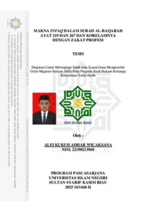 ALFI KUKUH ADHAR WICAKSANA, - (2025) MAKNA INFAQ DALAM SURAH AL-BAQARAH AYAT 219 DAN 267 DAN KORELASINYA DENGAN ZAKAT PROFESI. Thesis thesis, UNIVERSITAS ISLAM NEGERI SULTAN SYARIF KASIM RIAU.