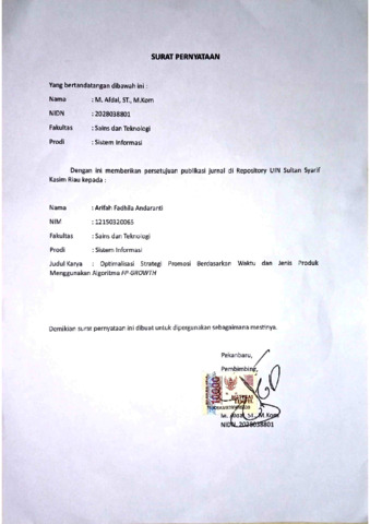 Arifah Surat Pernyataan Dosen.pdf - Published Version Download (196kB) | Preview |
