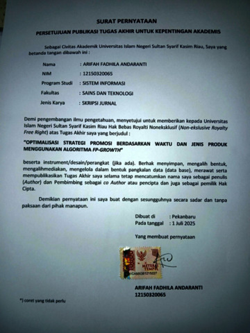 Surat Pernyataan 01 Jul 25 · 01·08·48 - ARIFAH FADHILA ANDARANTI SISTEM INFORMASI.pdf - Published Version Download (275kB) | Preview |