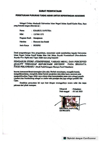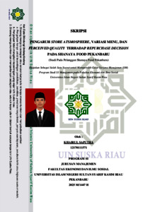 Khairul Saputra, - (2025) PENGARUH STORE ATSMOSPHERE, VARIASI MENU, DAN PERCEIVED QUALITY TERHADAP REPURCHASE DECISION PADA SHANAYA FOOD PEKANBARU (STUDI PADA PELANGGAN SHANAYA FOOD PEKANBARU). Skripsi thesis, UNIVERSITAS ISLAM NEGERI SULTAN SYARIF KASIM RIAU.